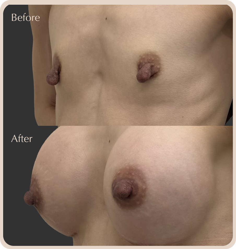 生まれつき乳首が大きい方、出産・授乳を終えて乳首が伸びてしまった方など多くのご相談を頂きます。授乳期には赤ちゃんが乳首を探しやすいように、乳輪・乳頭の色調は濃くなり、乳頭は肥大化して大きく変化します。授乳を終えた後も、そのままの大きさで残ってしまうことがあります。当院の乳頭縮小は、施術後も授乳機能に問題がないよう、乳管を傷つけない安全な術式を採用してます。施術時間も30分~1時間程度と短時間でご負担も少ないです。豊胸と同時に施術をご希望される方もおられます。 【垂直法】乳頭を短くする手術です。乳頭基部の皮膚を除去して、伸びた乳頭を短くします。乳管は温存されるので授乳可能です。 【直径法】乳頭の直径が大きい場合に行います。局所麻酔を行った後に、希望のサイズになるように乳頭をケーキカットするように扇型に切除して丁寧に縫合します。 【MIX法】垂直法、直径法を共に行います。長さも大きさもお悩みの方に適応があります。
